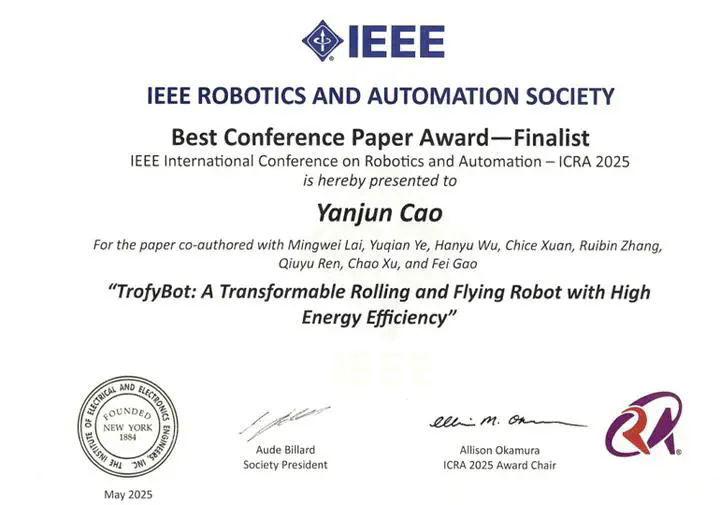Mingwei Lai and Yuqian Ye Win the Best Paper Award Finalist at ICRA 2025